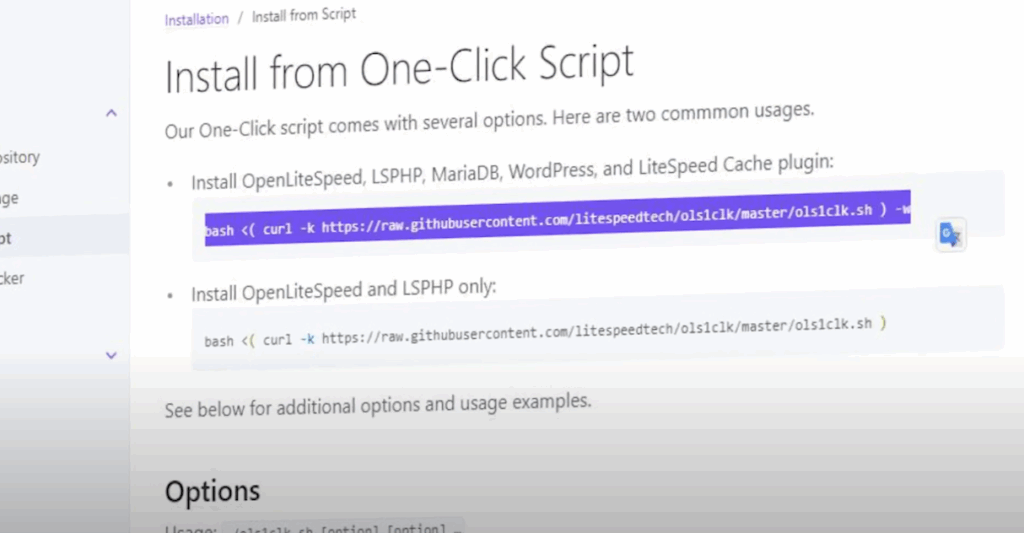 Step 3 | One-line installer | Install OpenLiteSpeed, MariaDB, LS-PHP, and WordPress |
