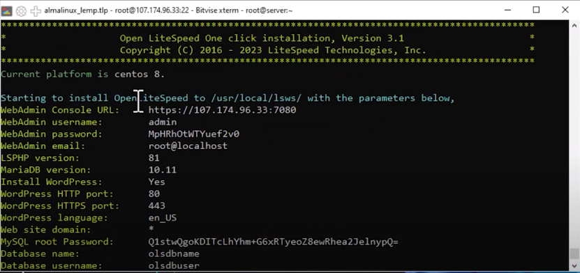 Now comes the exciting part — installing OpenLiteSpeed, MariaDB, PHP (LS-PHP), and WordPress all in one go.