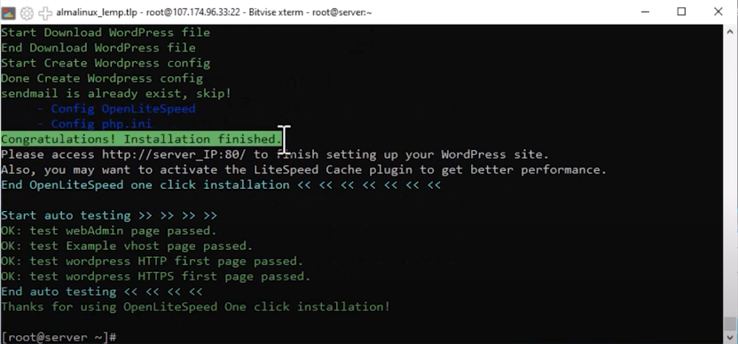 Congratulations! You’ve just installed WordPress using LOMP with OpenLiteSpeed — all with a single command.