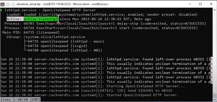 Once the installer finishes, check if the OpenLiteSpeed web server is active: