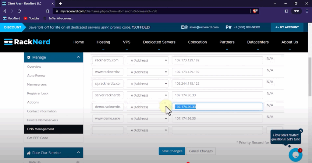 For this example, we’ll use the subdomain demo.racknerdtv.com. Replace it with your own domain during setup.